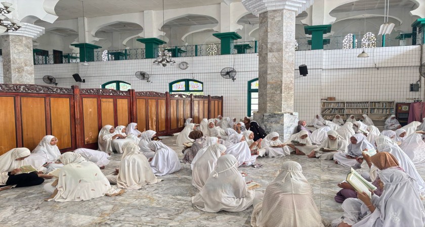 Santri Putri SMP Babussalam Pekanbaru Rutin Tadarus Al-Qur’an di Masjid